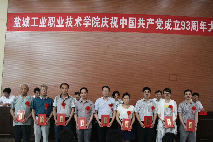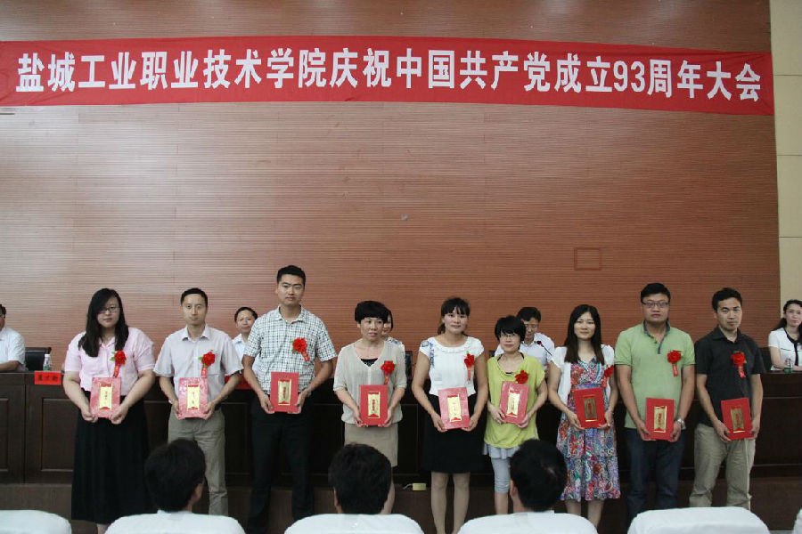 校党委副书记、纪委书记董顺锋宣读了《江苏省委教育工委关于表彰全省学校先进基层党组织、优秀共产党员、优秀党务工作者及标兵的决定》和《中共盐城工业职业技术学院委员会关于表彰优秀共产党员的决定》。校领导分别向受表彰的先进基层党组织、优秀共产党员和优秀党务工作者颁发了奖牌和荣誉证书。优秀共产党员代表王前文老师、新党员代表程卫华老师分别作了发言。