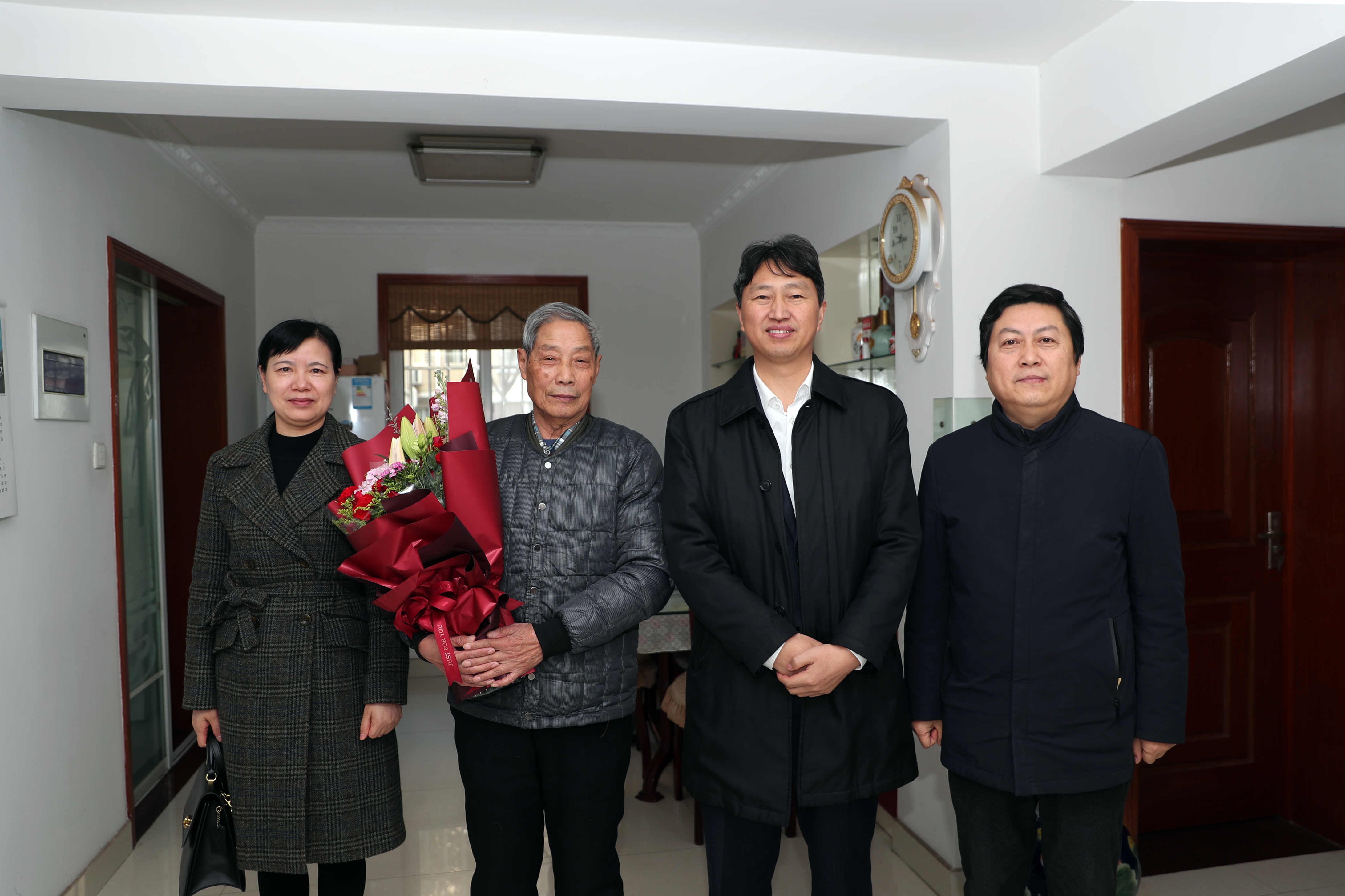 12月5日,学校党委书记邵从清带领党委委员、组织部部长吉鸿,组织部副部长祁艳清等同志,为今年适逢70岁、80岁生日的离退休老同志登门祝寿,送去组织的关心和祝福,表达诚挚的问候和美好的祝愿!在老同志家中,邵从清详细了解老人的身体和家庭情况,与老人家属聊起家常,并代表学校送上鲜花和慰问金,祝愿老人家身体健康,阖家幸福。