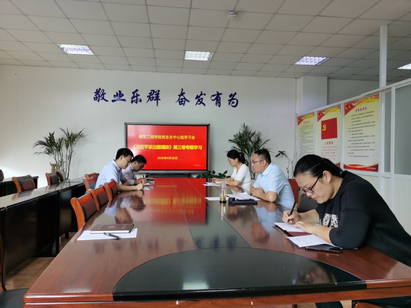 9月28日,建筑工程学院党总支中心组在创业园102会议室召开《习近平谈治国理政》第三卷专题学习会。学院党总支书记张国兵、副书记付佳佳,党总支委员、党支部书记和团总支负责人参加学习。张国兵主持学习会。