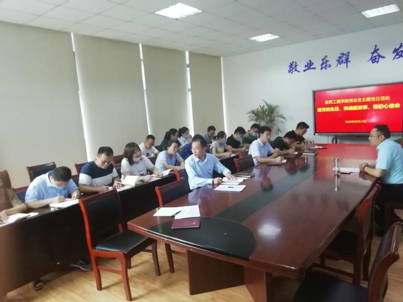2020年6月19日,建筑工程学院党总支在创业园102室开展“迎党的生日、讲战疫故事、悟初心使命”主题党日活动,会议张国兵书记主持,全体党员同志参加。
