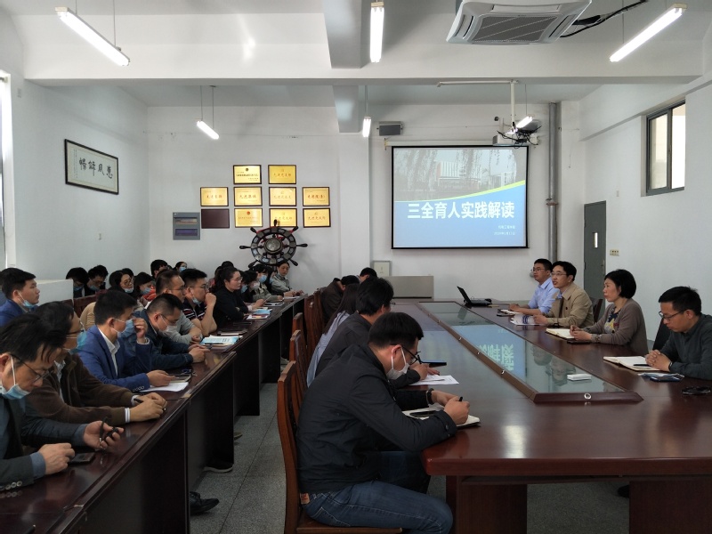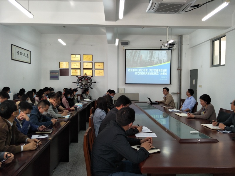 副院长姚月琴结合学校第二次党代会报告,介绍了二次党代会以来,学院在专业建设、人才培养、科研服务等领域的进展情况。总支书记陈杰带领大家共同学习了教育部等七部门印发《关于加强和改进新时代师德师风建设的意见》,结合安徽水利水电职业技术学院工作案例和我院工作实践解读了三全育人体系的建设。