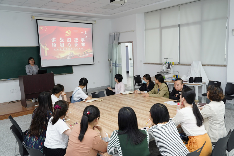 支部党员结合工作实际,分享自己在抗疫战斗中的故事。陈洁分享了疫情期间最为复杂的学生管理工作,从全院学生的疫情防控管理,到对学生的心理疏导,学习问题帮扶,娓娓道来,从中我们深切的感受到一位党员的工作热情与使命担当。服装专业负责人王林玉同志对疫情期间线上教学的开展,后疫情期间线上线下相结合的混合式教学,以及课程的后续建设提出了深入独到的见解,支部书记李月丽就大赛期间的学生管理、心理辅导、线上教学及技能大赛训练分享了自己的经验与遇到的问题与挑战,支部的其他教师党员也分别就自己疫情期间的教学、学生管理及科研等方面的工作分享了经验做法。每位党员同志还针对结对帮扶联系学生“四个一”分享了经验,结对学生代表张子健、白晨肖、许志秀、黄诗慧等同学讲述了疫情期间自己如何与结对老师紧密联系,在参加技能大赛以及班级管理、学习、生活等方面的成长故事。其中张子健、白晨肖因故未能到活动现场,特视频连线与大家分享自己的战疫故事及学习心得。
