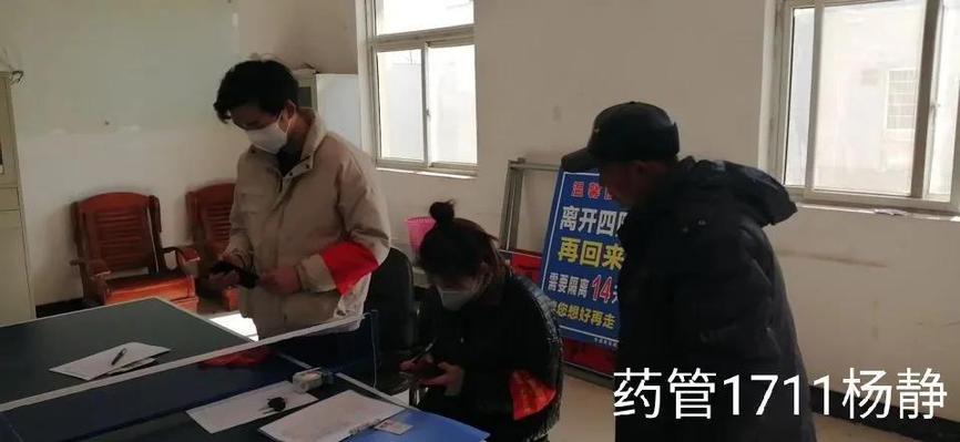 预备党员,疫情防控志愿者,药管1711杨静积极参与社区防范疫情宣传,挨家挨户的上门登记信息,为上了年纪不会使用智能手机的爷爷奶奶们做电子通行证。