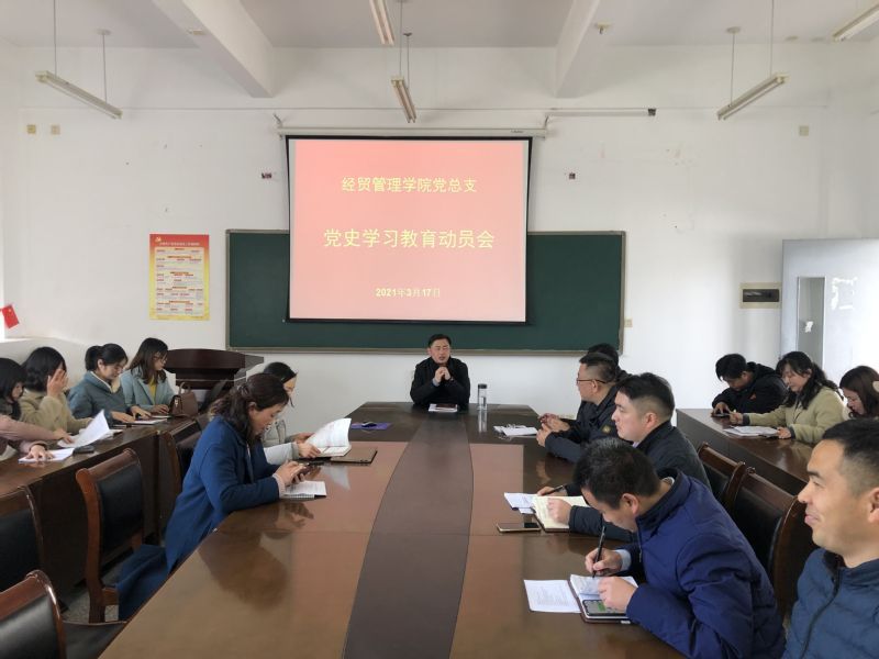 3月17日,经贸管理学院党总支在经贸309室召开党史学习教育动员会。会议由党总支书记周伟主持,学院全体教职工参加会议。