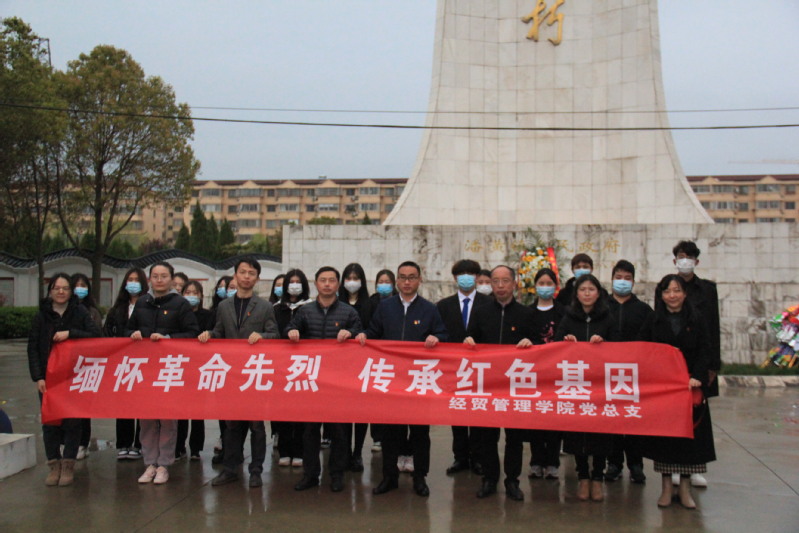 为缅怀革命先烈、传承红色基因,强化党史学习教育的现场感、带入感,3月31日,经贸管理学院党总支组织师生赴潘黄烈士陵园开展了以“缅怀革命先烈 传承红色基因”为主题的清明祭英烈活动。经贸管理学院党总支书记周伟,党总支副书记罗治得,第一党支部书记李萍,第二党支部书记薛志俊,团总支书记薛凌云和党员教师代表、入党积极分子代表、团员青年代表参加了本次活动,活动由薛凌云主持。