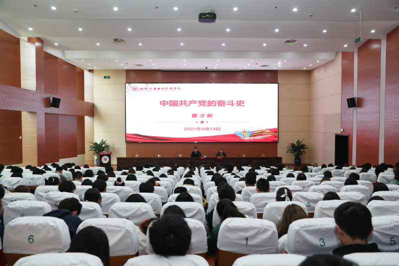 瞿才新以《中国共产党的奋斗史》为题,结合历史事件和热点问题,从“开天辟地、艰辛探索 、改革开放、基本经验”四个方面,系统介绍了“实现民族独立和人民解放、成功建立社会主义制度和探索如何建设社会主义、坚持和发展中国特色社会主义、马克思主义中国化”等基本内容,鼓励同学们自觉接受精神洗礼,传承红色精神,珍惜现在来之不易的学习机会。他指出,党史学习教育要把学党史、悟思想、办实事、开新局贯穿全过程。教师要立德树人,做好教科研服务工作;学生要掌握专业技能,传承“职业立身,技术报国”校训,回望过往的奋斗路,眺望前方的奋进路,把党的历史学习好、总结好,把党的成功经验传承好、发扬好。