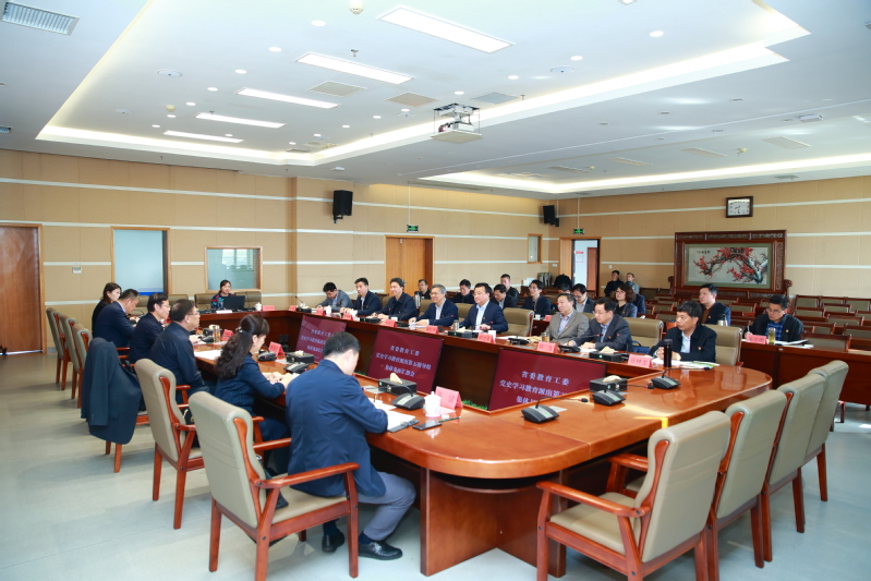 4月29日上午,省委教育工委党史学习教育派出第五指导组在盐城工学院南校区行政楼九楼会议室召开集体见面汇报会。指导组组长、江苏第二师范学院原党委书记李洪天主持。指导组副组长、徐州医科大学原党委副书记、副校长赵世鸿,我校党委书记邵从清,党委副书记张林龙,党委委员、宣传部部长陈宏武和盐城工学院党委书记刘祖汉、党委副书记薛浩,市委教育工委书记、市教育局党委书记、局长戴红光,市委教育工委副书记倪国华,江苏医药职业学院党委书记郝达富,明达职业技术学院院长陈万强等参加会议。
