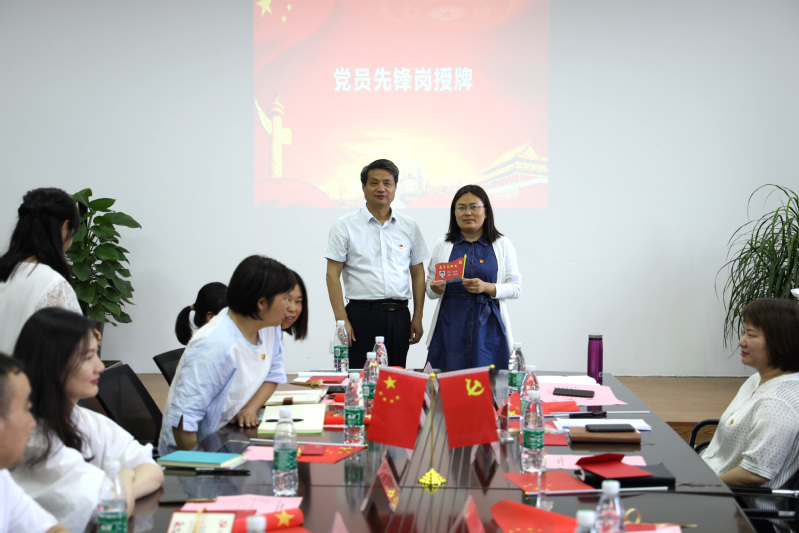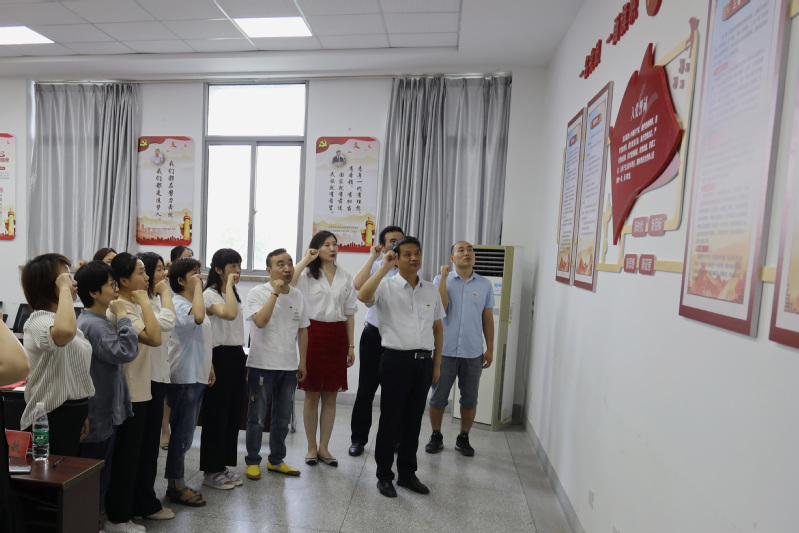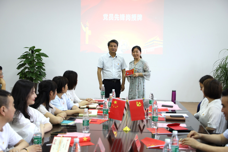 瞿才新带领全体党员重温了入党誓词,并为获得“党员先锋岗”的党员授牌,勉励全体党员学先进,抓重点,补短板、强弱项,为社会培养更多德智体美劳全面发展的应用型技术人才,为学校的发展建功立业。