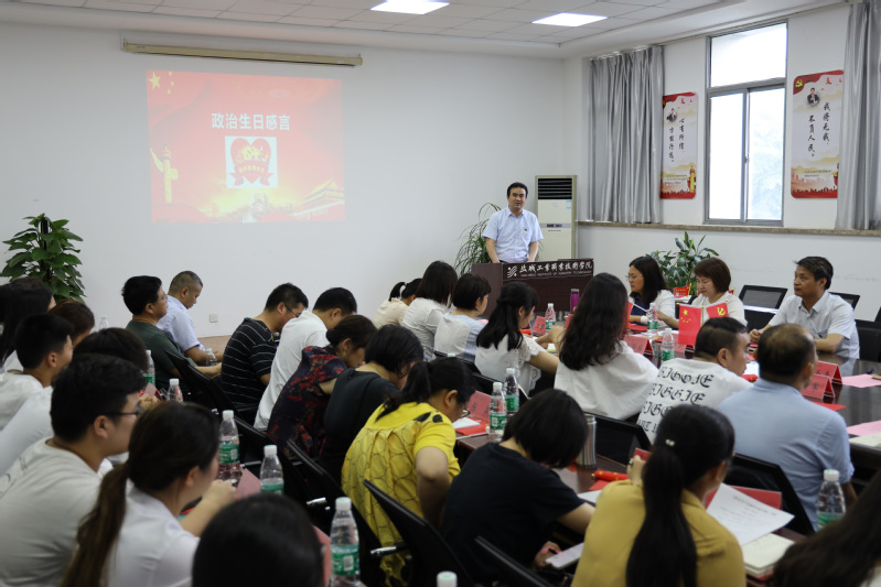 陈洁宣读了六月过政治生日的12位党员名单。随后,全体党员合唱歌曲《没有共产党就没有新中国》,歌声响亮,振奋人心。支部书记陈贵翠和李月丽为过政治生日的党员发放贺卡并送上政治生日寄语。姜为青、赵菊梅、钱伟三位同志分享了自己入党以来的感悟。学生预备党员王凯旋表达了自己参加政治生日的激动之情,表示要坚定理想信念跟党走,勇担时代责任奋发有为。