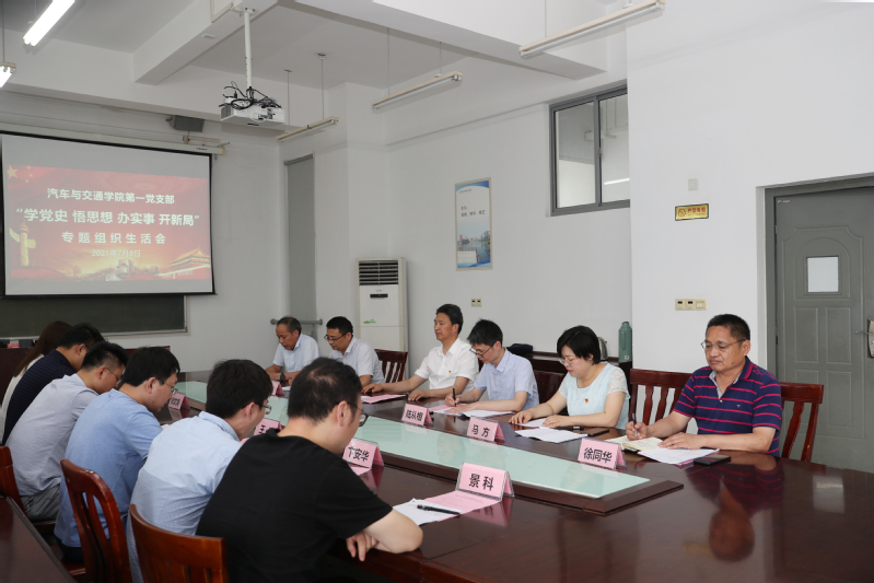 7月9日下午,汽车与交通学院第一党支部以“学党史、悟思想、办实事、开新局”为主题,在学院党员活动室召开党史学习教育专题组织生活会。学校党委书记邵从清以普通党员身份参加会议。支部书记马方主持会议。