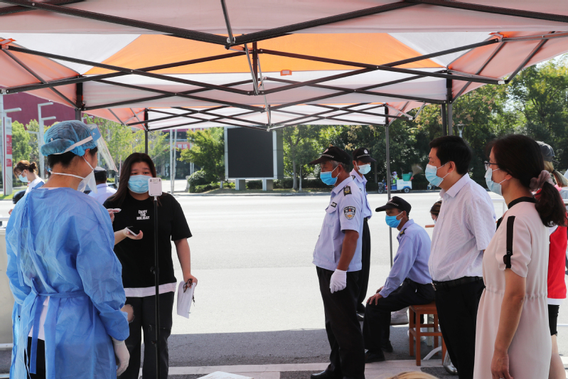 9月22日,校纪委书记夏燕萍带领疫情防控工作督查组赴学生报到现场,检查学生返校工作,办公室、组织部、宣传部、纪委办等部门负责人参加。