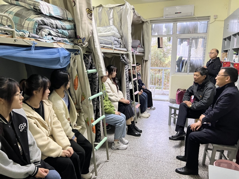 在1410学生宿舍,张林龙与同学们亲切交流,详细了解学生的学习生活情况,并对同学们遇到的困难和疑惑给予帮助和指导。他希望同学们要合理安排学习和生活,建立和谐的室友关系,立志做有理想、有本领、有担当的新时代青年。
