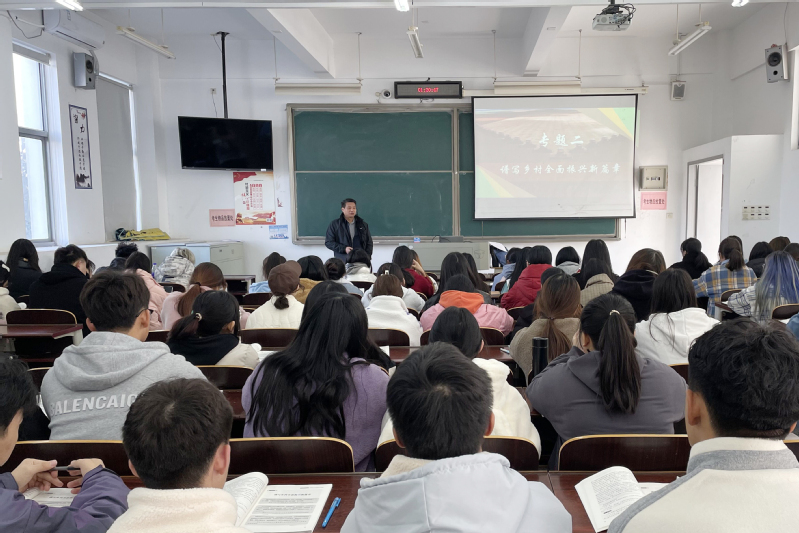 课上,瞿才新从历史、现实、未来三个层面与同学们一起重温了中国共产党对“三农工作”的重要历史经验;用数据分析与同学们进一步认识中国脱贫攻坚战取得的重大成果和“十三五”以来农业农村取得的历史性成就、发生的历史性变革;用积极的互动引发同学们思考:在向第二个百年奋斗目标下,如何巩固和拓展脱贫攻坚成果,全面推进乡村振兴,加快农业农村现代化建设。