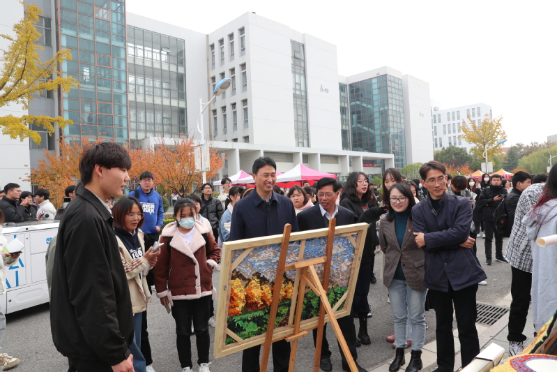 在社团纳新巡礼节现场,邵从清、刘必千及同行人员亲切询问各社团的纳新情况,现场指导各社团的纳新工作,并与部分社团负责人深入交流。