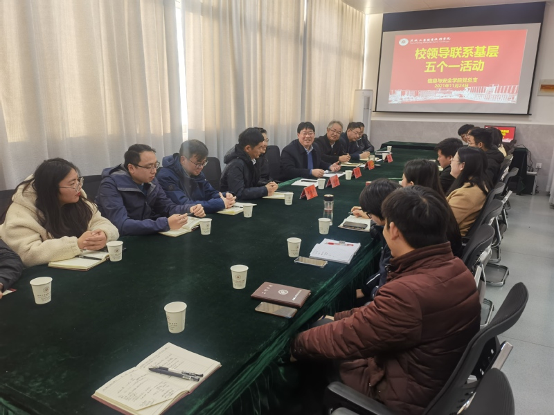 11月24日,副校长蔺俊来到信息与安全学院,就落实校领导联系基层“五个一”活动、践行“两在两同”建新功行动,同师生开展座谈交流。信息与安全学院领导班子成员、党员代表、民主党派成员、党支部书记、新教师和学生代表参加了座谈会。
