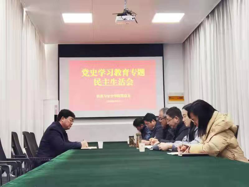 1月19日,信息与安全学院党总支在学院会议室召开党史学习教育专题民主生活会。校党委委员、副校长蔺俊到场指导。学院党总支领导班子全体成员参加会议,会议由学院党总支书记陈瑜主持。