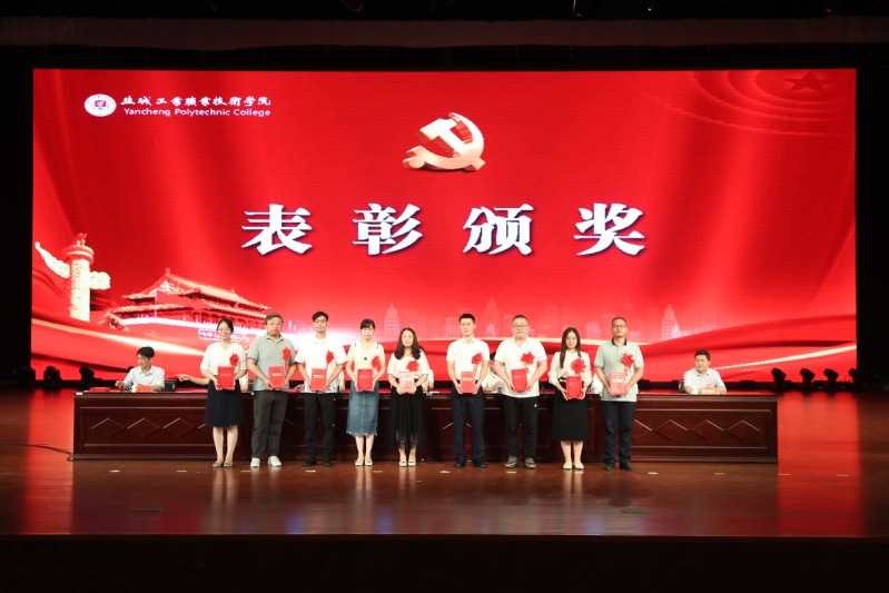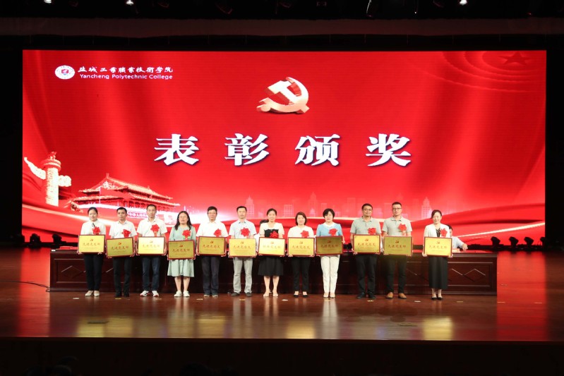 大会在庄严的国歌声中开始。党委委员、副校长孙卫芳宣读了表彰决定。校党委对一年来在教学、科研、管理、服务一线中取得优异成绩的12个先进基层党组织、25名优秀共产党员和6名优秀党务工作者以及9个2021年度综合考核先进集体予以表彰。校领导为先进集体和优秀个人颁发了奖牌和证书。先进基层党组织代表李萍、优秀共产党员代表赵菊梅、优秀党务工作者代表张国兵和综合考核先进集体代表陆从相分别作了交流发言。