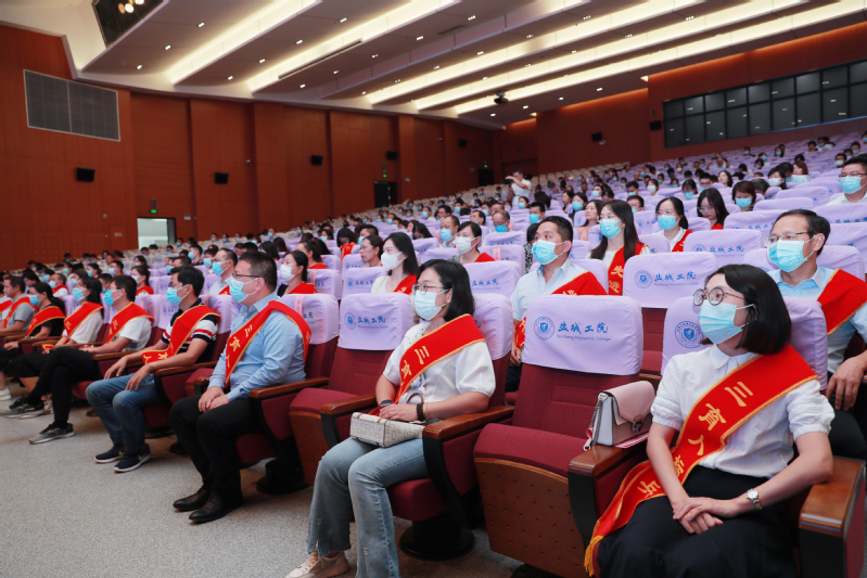 会上,瞿才新为今年新入职教师佩戴校徽,党委教师工作部部长、人事处处长李建国带领新教师进行入职宣誓,慷慨激昂的誓词表达了新教师们争做“四有”好教师的信心和忠于教育事业的决心。
