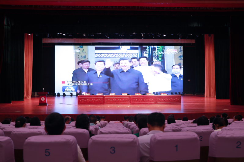 9月9日,在庄严的国歌声中,学校庆祝第38个教师节大会在大学生活动中心礼堂隆重举行。校党委书记邵从清,校长瞿才新,副校长孙卫芳、蔺俊,纪委书记夏燕萍,副校长陈宏武,党委委员、组织部部长吉鸿,全体教职工和退休教职工代表参加大会。大会由蔺俊主持。会议正式开始前,党委教师工作部组织全体教职工观看了《习近平的教师情》专题片。