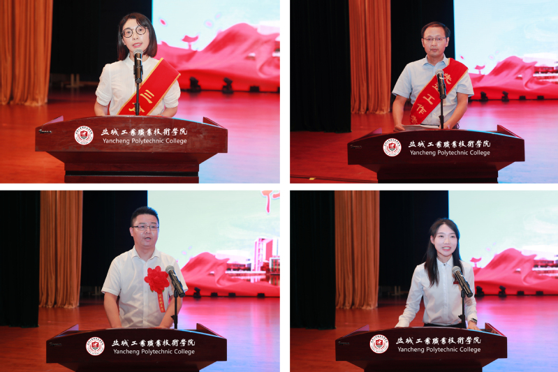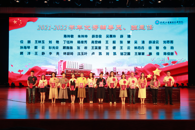 孙卫芳宣读了表彰决定,通报表扬了在2022年全国职业院校技能大赛、江苏省职业院校教学能力比赛和江苏省职业院校技能大赛中有突出贡献的15名教师。校领导为受表彰的“三育人”标兵、先进工作者、优秀辅导员、优秀班主任颁发了荣誉证书。“三育人”标兵代表黄春香,先进工作者代表仓金顺,优秀辅导员、班主任代表顾洋,新教师代表蒋闺鑫分别作了热情洋溢的发言。