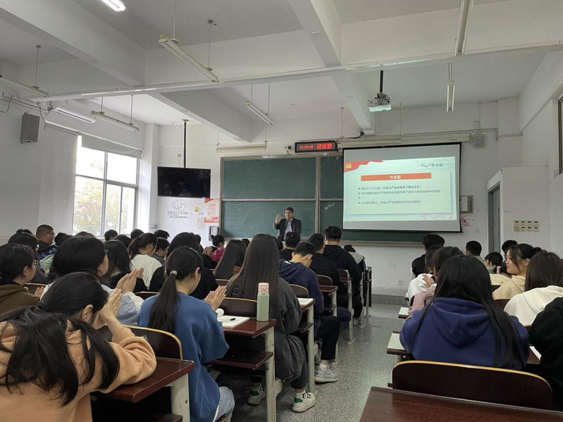 11月1日上午,校长瞿才新深入课堂,在公共教学组团5104教室为药品与健康学院药品生产2111班、2112班和药物制剂2111班的学生讲授题为《新时代全面从严治党的伟大实践》的“形势与政策”课。