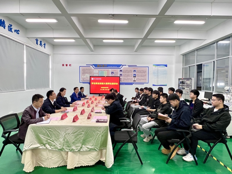 11月10日,副校长孙卫芳前往智能制造学院,深入开展校领导联系基层“五个一”活动,在工业中心省级“双师型”名师工作室召开学生职业技能大赛师生座谈会。智能制造学院领导班子成员以及现代电气控制系统安装与调试、机器人系统集成、风光互补发电系统安装与调试、数控机床装调与技术改造和智能电梯装调与维护等5个赛项团队师生代表参加座谈会。智能制造学院党总支书记贲能军主持座谈会。