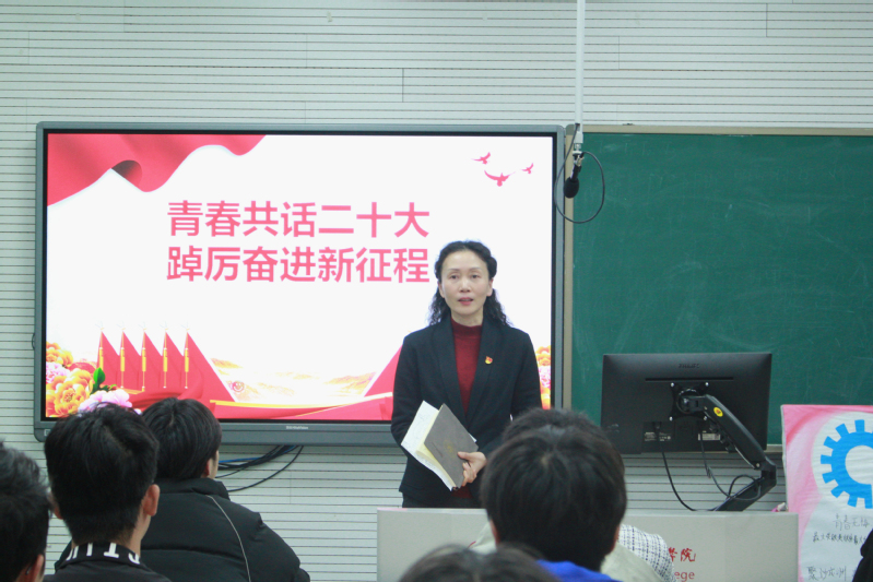 3月16日下午,副校长孙卫芳在工业中心401室参加联系班级数控2232班“青春共话二十大 踔厉奋进新征程”主题班会。智能制造学院领导班子全体成员,辅导员代表和数控2232班全体师生参加班会。数控2232班班主任吴清主持班会。