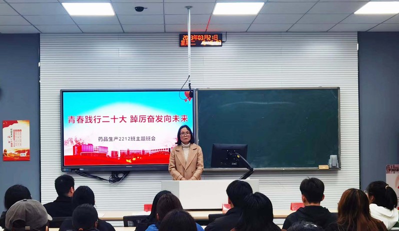3月21日下午,校纪委书记夏燕萍前往药健学院204教室,参加联系班级药品2212班“青春践行二十大 踔厉奋发向未来”主题班会。药品与健康学院领导班子成员,部分教师代表和药品2212班全体师生参加班会。药品2212班班主任郑童主持班会。