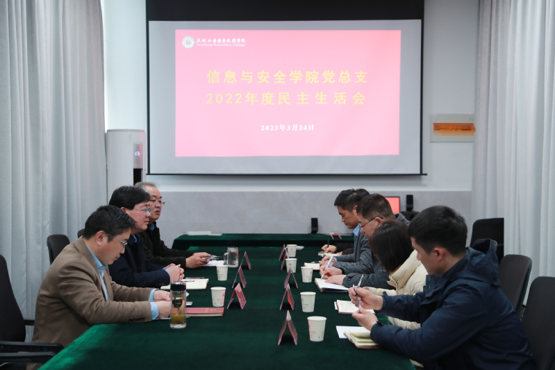 3月24日,信息与安全学院党总支在学院会议室召开民主生活会,副校长蔺俊到会指导。信息与安全学院党总支委员会全体成员参加会议,会议由党总支书记陈瑜主持。