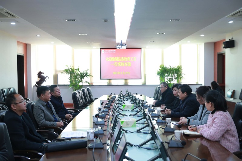 马汝刚对学校的热情接待表示感谢。他介绍了建湖县吸引优秀青年人才投身乡村建设的工作举措。双方就加强校地、校校合作,机械、幼儿保育、体育等专业的人才培养和招生就业等方面进行了深入交流。