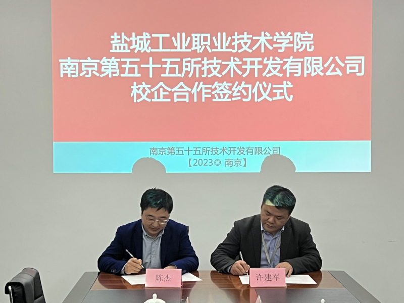 4月7日下午,邵从清一行来到了南京第五十五所技术开发有限公司。该公司副总裁余云峰、校企合作副总经理许建军、销售总监石淼热情接待了邵从清一行。余云峰介绍了企业的主要情况,许建军就双方校企合作方面的相关细节展开了交流。邵从清介绍了学校近年来服务盐城市电子信息产业发展的情况,对该公司对我校专业建设和人才培养等方面提供的帮助表达了感谢。他希望双方今后能够在企业实践教师平台搭建的基础上,进一步在师资培养、技能竞赛、1+X考核、教学能力比赛等方面加强合作。陈杰与许建军共同签订了校企合作协议。