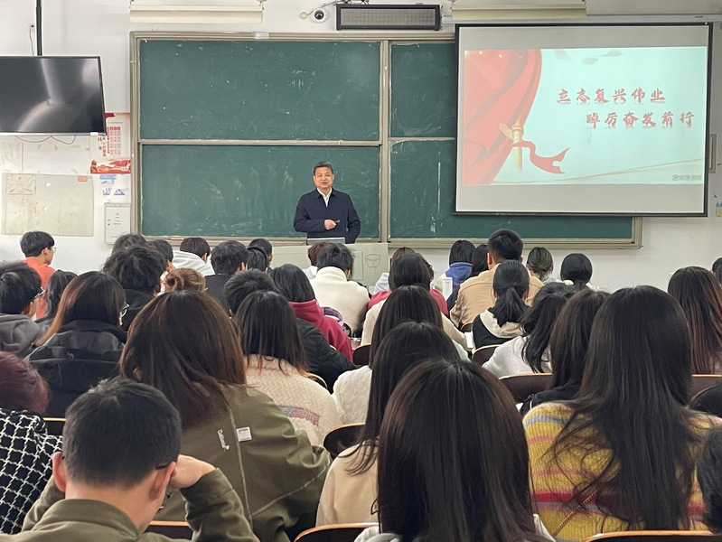 4月12日,校长瞿才新在公共教学组团5103教室为纺织与服装学院22级服工、商务、社管专业的95名同学讲授了题为《立志复兴伟业 踔厉奋发前行》的“形势与政策”课。