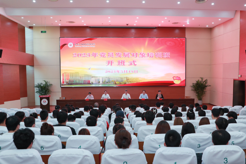为深入学习贯彻党的二十大精神,扎实抓好学习贯彻习近平新时代中国特色社会主义思想主题教育,全面做好新形势下党员发展工作,5月19日,学校党校2023年上半年党员发展对象培训班开班式在图文信息中心学术报告厅举行。学校党委书记邵从清,党委组织部负责人郭泽忠,党委宣传部负责人张国兵,离退休教职工党总支书记、党委组织部副部长祁艳清和组织部副部长邵癸出席开班式。各二级学院党总支书记、组织员和全体党员发展对象参加了开班式。会议由郭泽忠主持。