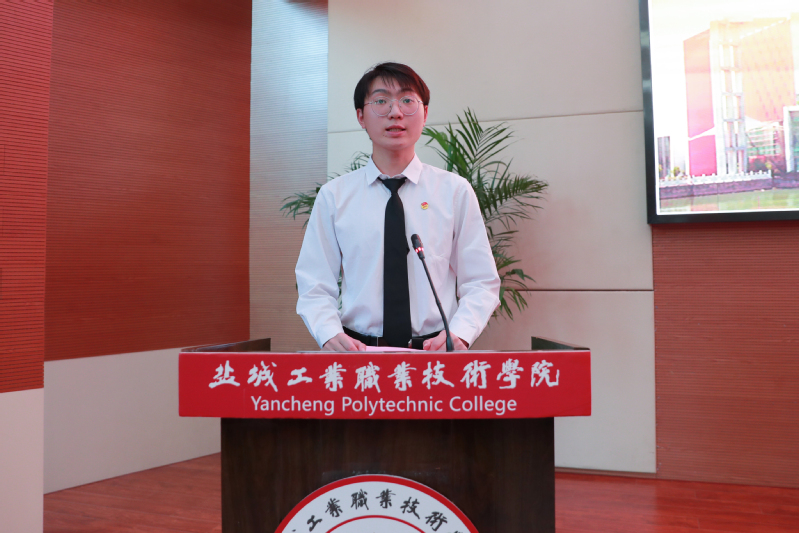 汽车与交通学院中德21级SGAVE班的高国强同学作为代表发言,表示将进一步端正入党动机,珍惜学习机会,以党员的标准来严格要求自我,遵守纪律、努力学习、苦练本领,服务社会、报效国家,为学校早日建成江苏省中国特色高水平高职学校尽自己的责任和义务,做一名心中有梦、眼里有光的优秀大学生。