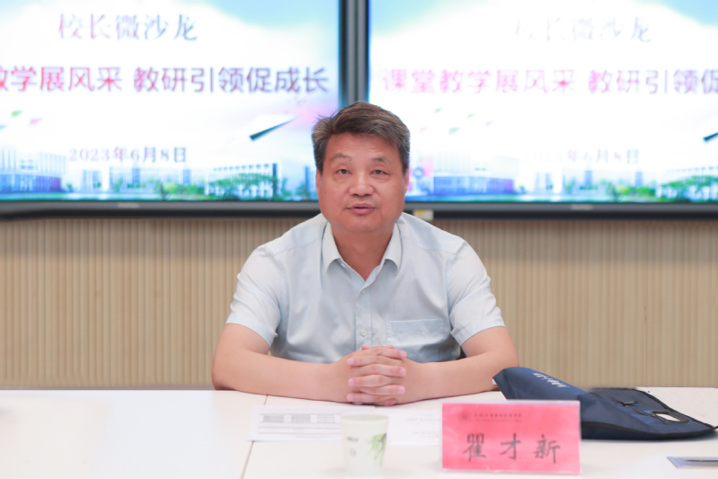 瞿才新对本次沙龙活动给予了充分肯定。他强调,要将常态化教研活动落到实处,不断优化课堂教学设计,丰富课堂教学内容与形式,并提出了三点要求:一是要重视课堂教学。课堂是学校教育教学工作的主阵地,是人才培养的中心环节,要把提高课堂教学质量作为教学的核心任务。二是要练好教学基本功。让课堂回归“原生态”,杜绝教学比赛与日常教学“两张皮”。以大赛为引领,强化立德树人理念,锤炼教学基本功,积极探索教学模式与方法改革,促进教师教育教学水平有效提升。三是要做好“传帮带”。加强教学督导工作,强化教学规范意识,充分发挥骨干教师示范引领作用,加快青年教师成长进程,着力建设“四有”好教师队伍。