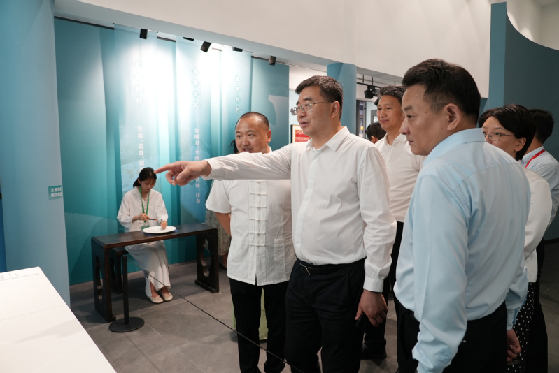 活动前,学校党委书记邵从清陪同相关领导及与会嘉宾参观了海春轩塔、盐仓监、“水韵江苏·非遗购物节”主会场、新四军东进北上革命文物展、“文物赋彩美好生活”图片展、东台早茶非遗馆以及我校非遗学院实训基地东台发绣展示馆、大丰瓷刻艺术展等非遗景点。