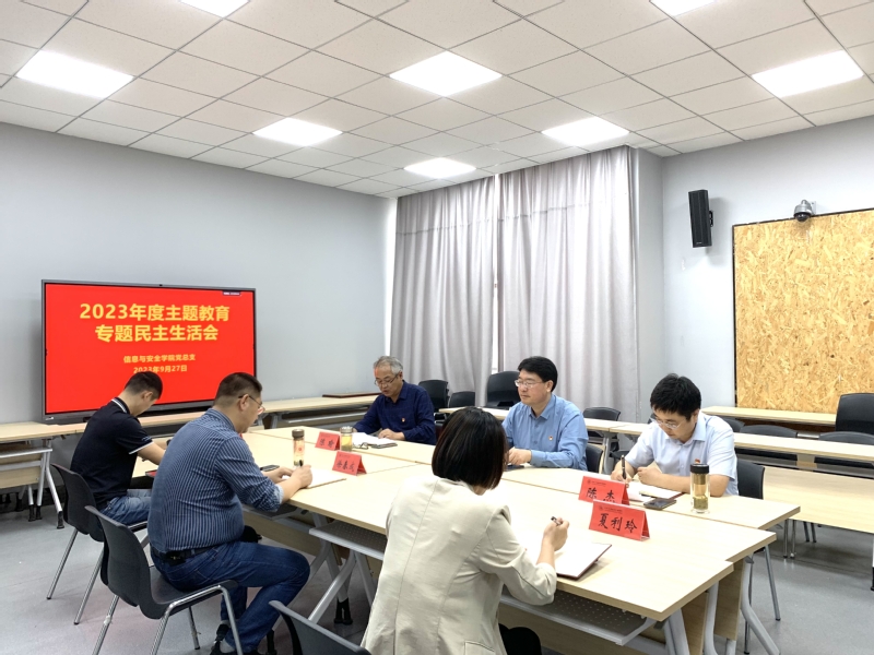 9月27日下午,信息与安全学院党总支在公共教学组团2301会议室召开学习贯彻习近平新时代中国特色社会主义思想主题教育专题民主生活会。党委副书记蔺俊出席会议并作指导。会议由信息与安全学院党总支书记陈瑜主持。