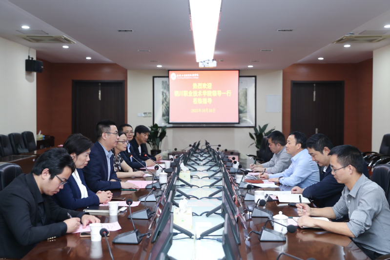 刘军民对我校近年来取得的成绩表示高度赞赏,并介绍了此次调研交流的目的及铜川职业技术学院目前发展概况、办学特色等。他希望以此次调研为契机,两校在专业建设、师资队伍建设、人才培养、科学研究、校企合作等方面进一步加强交流合作,共同推进两校的高质量发展。