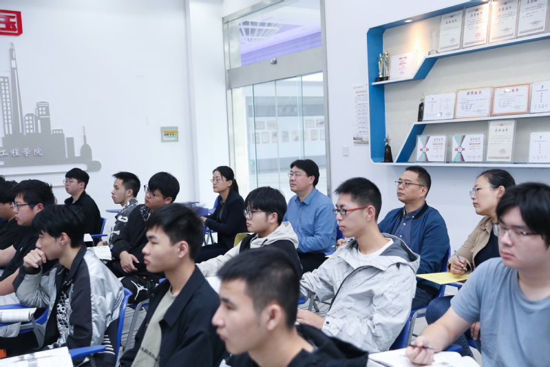 蔺俊一行走访了建筑工程学院理实一体化教室、实训室和技能大赛集训基地等场所。在学院教室,蔺俊听取了陈惠惠老师讲授的《建筑构造》课程,并与授课老师进行了深入交流。他希望学院教师要进一步发挥理实一体化教室优势,在强化师生互动、改革教学方法等方面积极探索,不断提升课堂教学实效。