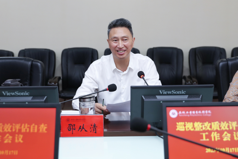 10月17日下午,学校在图文信息中心第一会议室召开巡视整改质效评估自查工作会议。校党委书记邵从清,纪委书记顾玉萍,各党总支、直属党支部书记,相关职能部门负责同志和纪委办公室、执纪审查室全体人员参加会议。会议由顾玉萍主持。