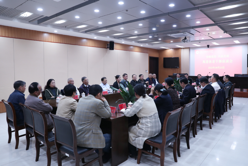 10月23日,在重阳佳节之日,学校在图文信息中心第三会议室召开“情暖重阳 共话发展”离退休老干部座谈会。校党委书记邵从清,校长刘玉申,副校长王曙东,党委委员、组织部部长郭泽忠,人事处处长李建国,离退休党总支书记祁艳清与离退休老领导、老同志代表共庆重阳、共叙情谊、共话发展。座谈会由郭泽忠主持。