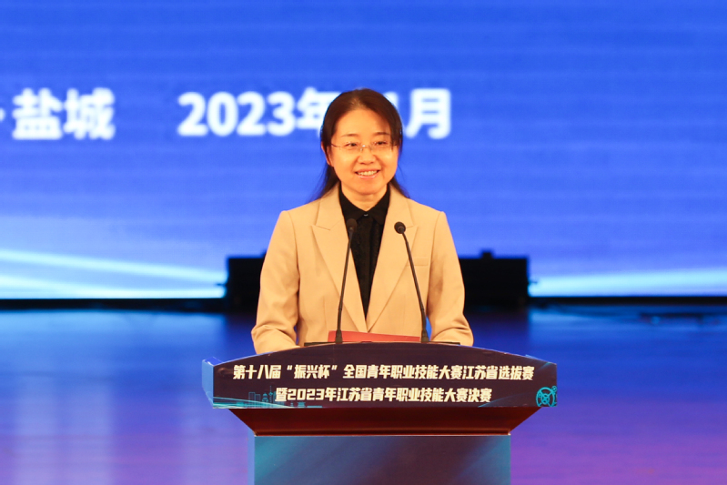 11月6日下午,大赛闭幕式在我校大礼堂举行。盐城市人民政府副市长李兰翔,共青团江苏省委副书记李晓明,我校党委书记邵从清、校长刘玉申,盐城市总工会党组书记、常务副主席王玉新,共青团盐城市委书记张阳光,共青团江苏省委青年发展部副部长王雷,盐城市教育局、人社局、团市委、盐城机电高等职业技术学校相关领导出席活动,各设区市团委分管书记、部门负责人,大赛裁判、技术指导、参赛选手、青年技能人才代表等共计800余人参加活动。