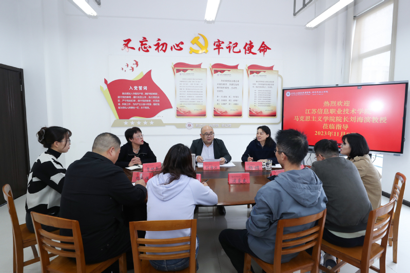 为深入贯彻党的二十大精神和习近平总书记关于思政课建设的重要论述,11月8日上午,省高校思政课高职高专分教指委委员、江苏信息工程职业技术学院马克思主义学院院长刘海滨教授莅临我校马克思主义学院开展调研指导。