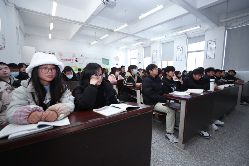 课堂中,徐桂中围绕“教育”“科技”“人才”三个主题,详细阐释了三者之间的内在逻辑关系,向同学们讲授了当前我国正在建设教育强国的道路上阔步前进,并紧扣我校近年来发展所取得的成就,向同学们介绍了党和国家的各项政策对于我校建设的推动作用。