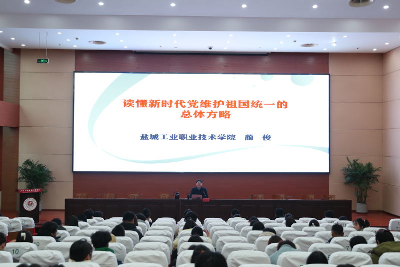 12月12日,学校党委副书记蔺俊以《读懂新时代党维护祖国统一的总体方略》为题,为艺术设计学院工艺美术2311、2331班,艺术设计2311、2331班,广告2311、2331班的同学讲授“形势与政策”课。