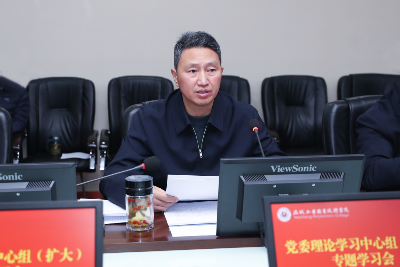 邵从清指出,习近平法治思想是一个内涵丰富、论述深刻、逻辑严密、系统完备的科学理论体系,要深刻理解和把握习近平法治思想的重大意义、精神实质和实践要求,切实把习近平法治思想贯彻落实到全面依法治校全过程各方面。一是要提高政治站位,在学深悟透习近平法治思想上下功夫。二是要加强宣传教育,在提升师生法治素养和能力上下功夫。三是要加强依法治校,在推进学校治理体系和治理能力现代化上下功夫。邵从清强调,全校上下要将习近平法治思想融入依法治校工作全过程,围绕学校章程,加强和改进作风建设,提升管理水平和服务质量,在守纪律、讲规矩,提升运用法治思维和法治方式推动学校改革发展的能力,营造风清气正的政治生态和良法善治的育人环境,为加快建设国内一流高水平高职院校保驾护航。