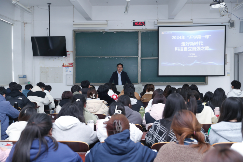 3月26日,校长刘玉申以《走好新时代科技自立自强之路》为题,为纺织服装学院纺织2211、纺贸2211、纺设2211、服工2211、服工2231班的同学讲授开学第一课。