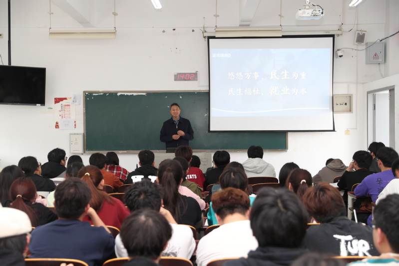 4月27日,校党委书记邵从清以《当前就业形势与实施就业优先战略》为题,为汽车与交通学院汽服2311、2312和新汽2312班的同学讲授“形势与政策”课。