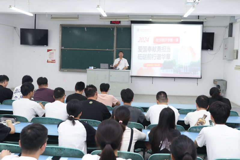 9月5日,校党委书记邵从清以《爱国奉献勇担当 砥砺前行谱华章》为题,为汽车与交通学院汽服2311、2312和商学院物流2311班的同学讲授了“开学第一课”。