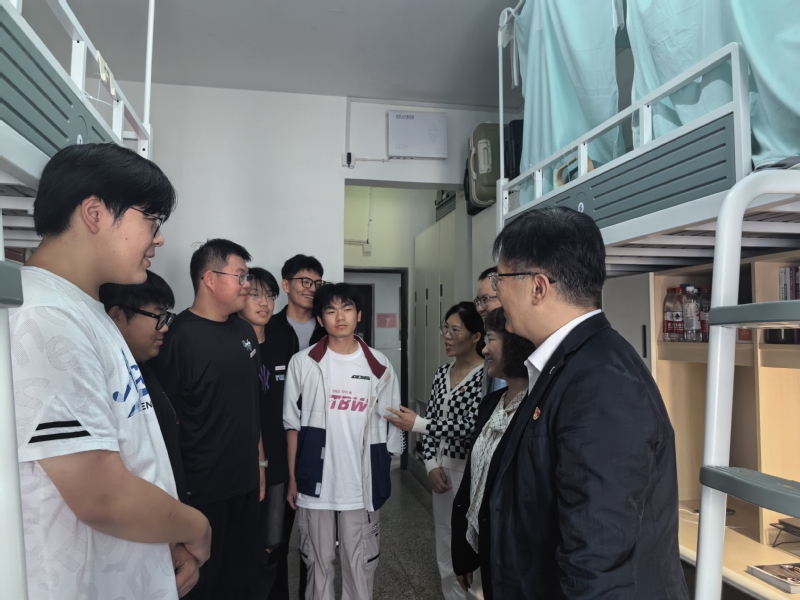 开班仪式后,刘玉申走访了纺织2411班6208学生宿舍,与同学们亲切交谈,详细了解同学们思想、学习、生活方面的情况,聚焦学生“急难愁盼”问题,有针对性地进行解决,表示学校会为同学们提供多方位的学习指导、多维度的服务关心。他叮嘱同学们要树立“青春向党、强国有我”的志向抱负,陶冶“立德修身、涵养美德”的道德情操,激发“勤学笃行、甘于奉献”的奋进力量,在人生征程上奏响青春“最强音”。
